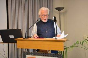 Für die Laudatio konnten wir den gebürtigen Inder, Autor, Jounalist und Sprachlehrer Jose Punnamparambil gewinnen, der seit über 50 Jahren in Deutschland lebt und mit Martin Kämpchen seit langen Jahren durch zahlreiche Projekte eng verbunden ist (Vielen Dank an Ruth Heap von der deutsch-indischen Gesellschaft und unser ehemaliges Vorstandsmitglied Alice Schumann für die Vermittlung!). Näheres zur Biographie und zu Veröffentlichungen von J. Punnamparambil s. hier. Punnamparambil zeichnete in seiner Laudatio den Lebensweg von Martin Kämpchen und sein schriftstellerisches Schaffen in eindrücklicher Weise nach und würdigte ihn als einen prägenden Vermittler indischer Kultur und Religion der Nachkriegszeit für die westliche Welt. Den detaillierten Wortlaut der Laudatio, die der Laudator coronabedingt nur online vortragen konnte, finden Sie hier. Der Wortlaut der Urkunde, die Martin Kämpchen nach der Laudatio überreicht wurde, ist hier zu finden.