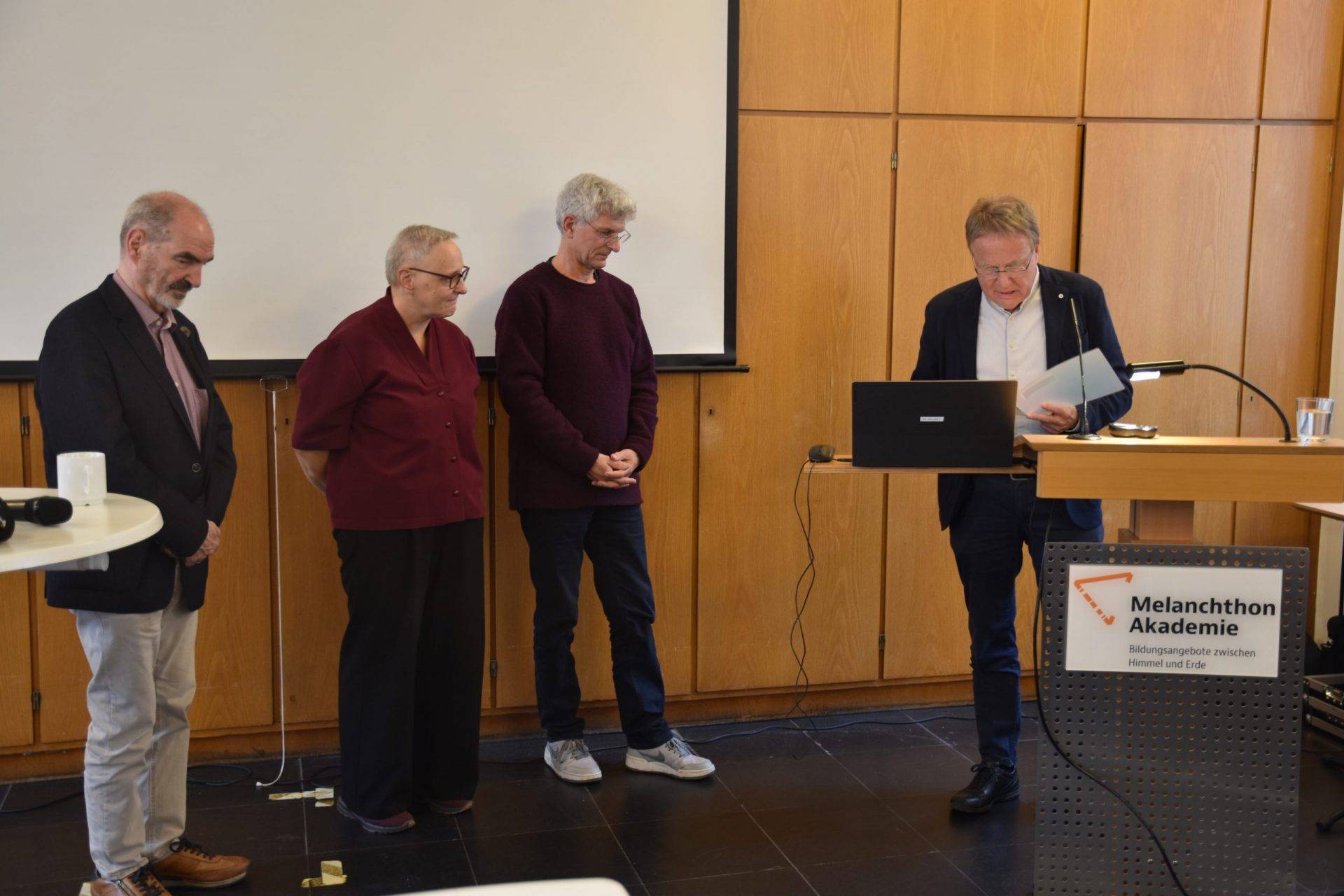 Für das ENBCS nahmen der Vorsitzende Prof. Dr. Perry Schmidt-Leukel und eine seiner designierten Nachfolger:innen Dr. Carola Roloff die Auszeichnung in Empfang. Für MiA war Herr Simpert Würfl als Vertreter aus Mölln angereist, um den Preis entgegenzunehmen.